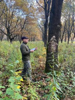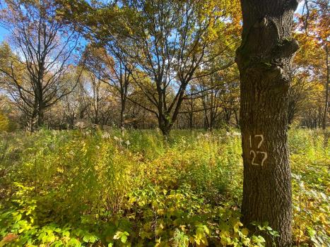 Фото 1. Вирубування рядів дерев дуба звичайного на клоновій плантації 1977-1978 року створення станом на осінь 2017-го року (Турбівське лісництво ДП «Вінницька лісова науково-дослідна станція»)