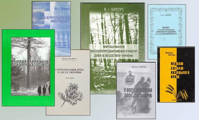 Василь Іванович Білоус – відомий в Україні та за її межами фахівець у галузі лісівництва, чия наукова діяльність характеризується комплексністю й виробничою спрямованістю. Основний напрям його досліджень – теоретичні й практичні питання селекції листяних лісових видів, зокрема таких, як індивідуальний і масовий добір, гібридизація, селекція на високу продуктивність (інтенсивність росту) й насінництво дуба звичайного та інтрогресивних (природних) гібридів дубів звичайного й скельного.